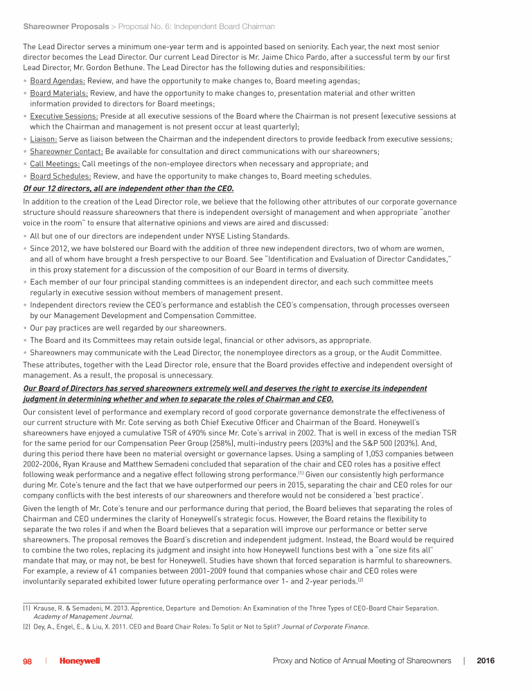 Proposal No. 5: 2016 Stock Plan for Non-Employee Directors of Honeywell International Inc.