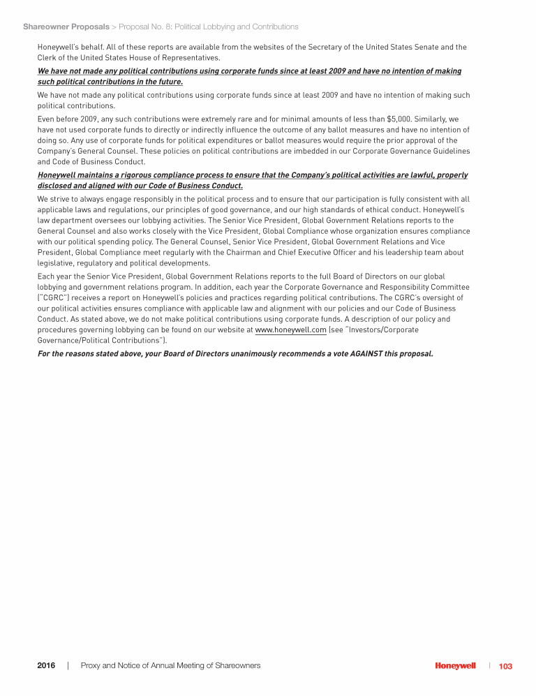 Proposal No. 5: 2016 Stock Plan for Non-Employee Directors of Honeywell International Inc.