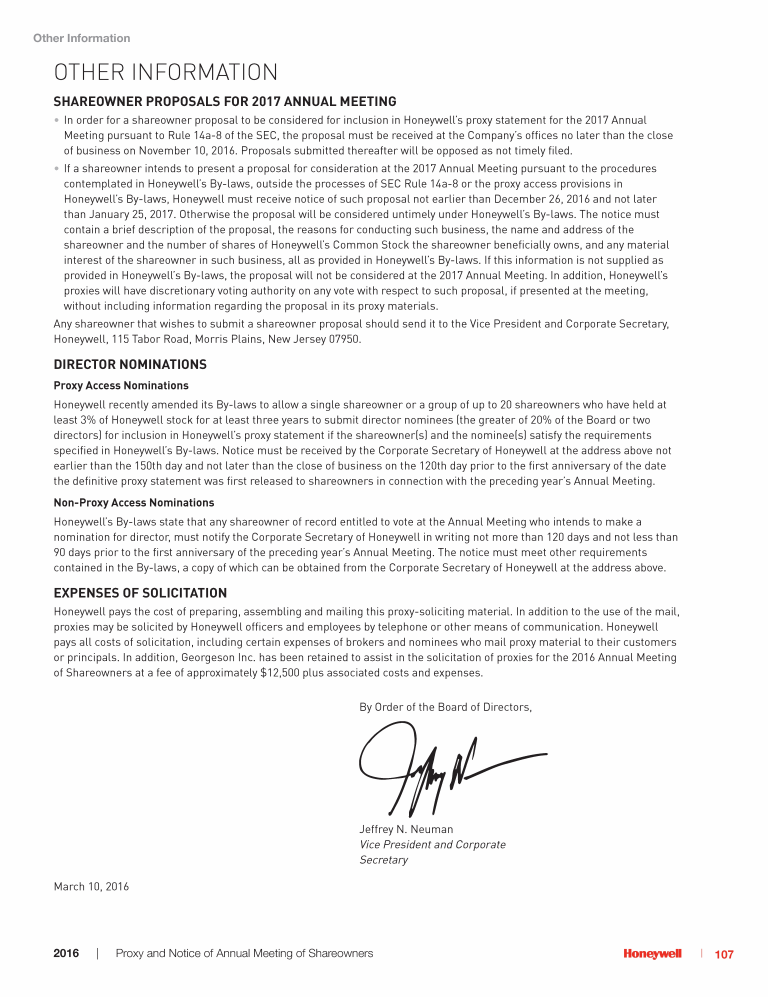 Proposal No. 5: 2016 Stock Plan for Non-Employee Directors of Honeywell International Inc.
