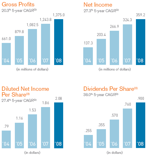 (2) Compounded annual growth rate (CAGR). We do not anticipate our annual performance in 2009 will match our 5-year CAGR