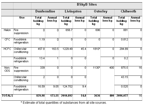 The site has been built without the use of any ODSs in any of the systems.
