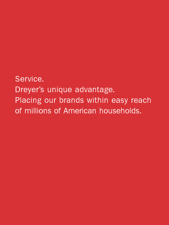 Service. Dreyer's unique advantage. Placing our brands within easy reach of millions of American households.