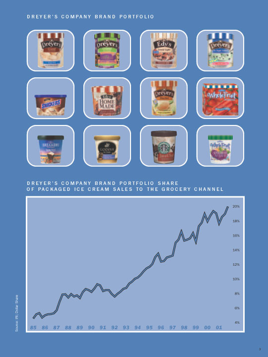 Dreyer's company brand portfolio share of packaged ice cream sales to the grocery channel