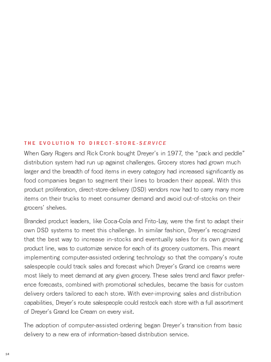 capabilities, Dreyer÷s route salespeople could restock each store with a full assortment
