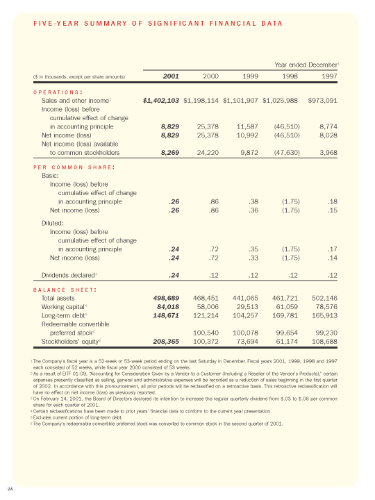 The CompanyÖs fiscal year is a 52-week or 53-week period ending on the last Saturday in December. Fiscal years 2001, 1999, 1998 and 1997