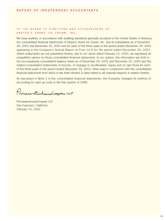 the consolidated financial statements of Dreyer÷s Grand Ice Cream, Inc. and its subsidiaries as of December