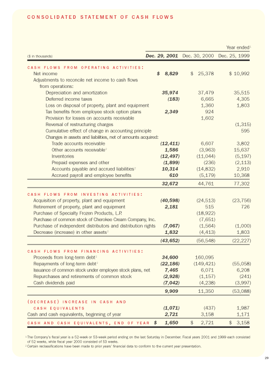 ($ in thousands) Dec. 29, 2001 Dec. 30, 2000 Dec. 25, 1999
