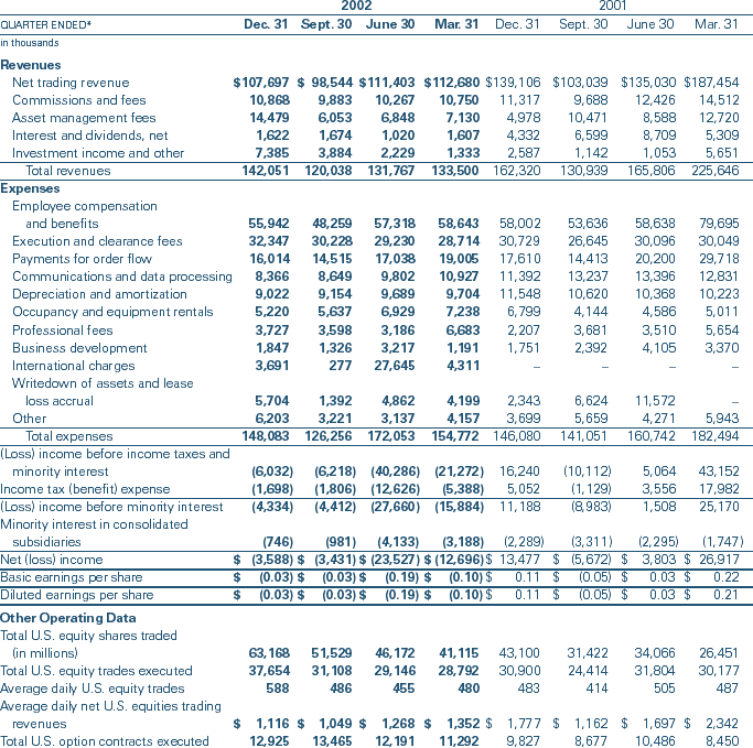 quarterly operating data for 2002 and 2001, respectively. In the opinion