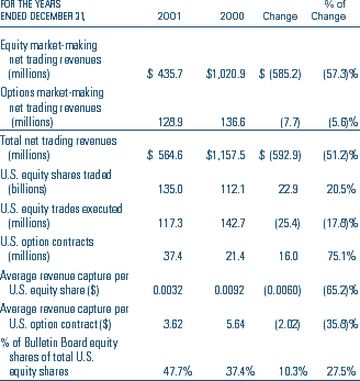 to $435.7 million in 2001, from $1,020.9 million in 2000. Equity trading