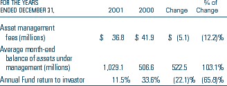 Asset management fees decreased 12.2% to $36.8 million in 2001 from
