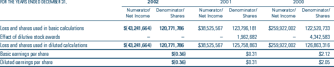 For the year ended December 31, 2002, 1,374,689 shares of common
