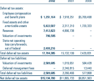 at December 31, 2002, 2001 and 2000 are as follows: |