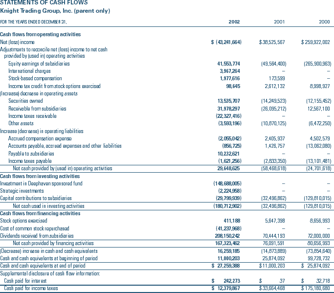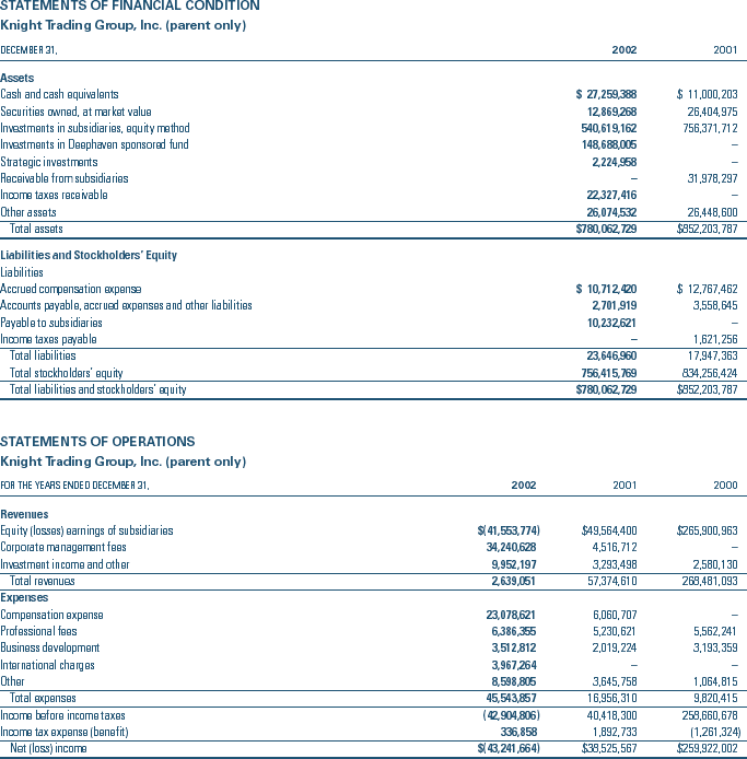 Note 20: CONDENSED FINANCIAL STATEMENTS OF KNIGHT TRADING GROUP, INC. (PARENT ONLY)
