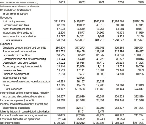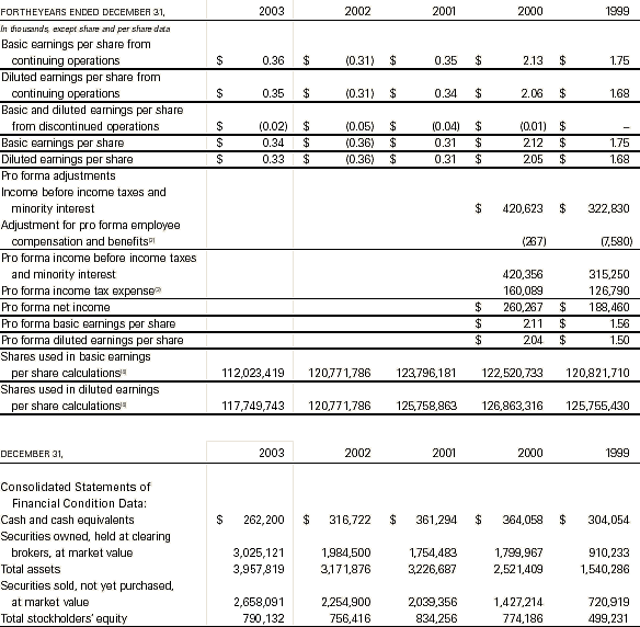 2002 and 2003 and the Consolidated Statements of Financial Condition Data