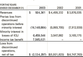 was subsequently liquidated in 2003. The Company owned 60% of KSJ through