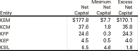 of minimum net capital. Additionally, KSIL is subject to regulatory requirements