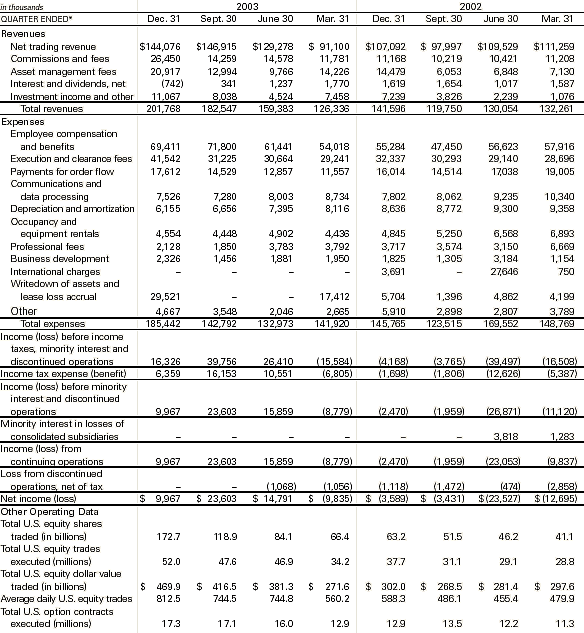consolidated quarterly operating data for 2003 and 2002, respectively. In the opinion of our management, this unaudited information has been prepared on substantially the same basis as the consolidated financial statements appearing elsewhere in this annual report and includes all adjustments (consisting of normal recurring adjustments) necessary to present fairly the unaudited consolidated quarterly data. The unaudited consolidated quarterly data should be read in conjunction with the audited consolidated financial statements and notes thereto appearing elsewhere in this annual report. The results of any quarter are not necessarily indicative of results for any future period.