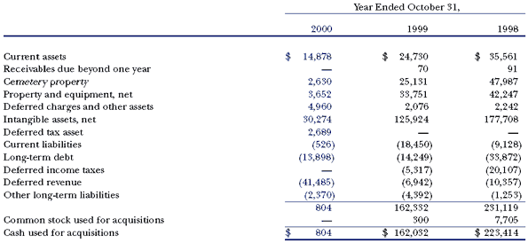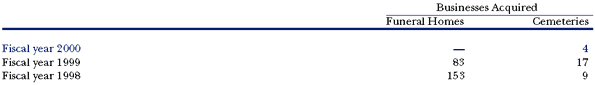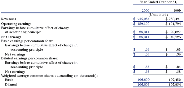 These acquisitions have been accounted for by the purchase method, and their results of operations are included in the accompanying consolidated financial statements from the dates of acquisition. The purchase price allocations for certain of these acquisitions are based on preliminary information. The following table reflects, on an unaudited pro forma basis, the combined operations of the Company and the businesses acquired during fiscal year 2000 as if such acquisitions had taken place at the beginning of the respective periods presented. Appropriate adjustments have been made to reflect the accounting basis used in recording the acquisitions. These pro forma results have been prepared for comparative purposes only and do not purport to be indicative of the results of operations that would have resulted had the combinations been in effect on the dates indicated, that have resulted since the dates of acquisition or that may result in the future.