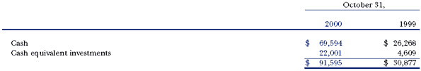 (7) CASH AND CASH EQUIVALENT INVESTMENTS The Company considers all highly liquid investments with an original maturity of three months or less to be cash equivalents. The Company deposits its cash and cash equivalent investments with high quality credit institutions. Such balances typically exceed applicable FDIC insurance limits.
