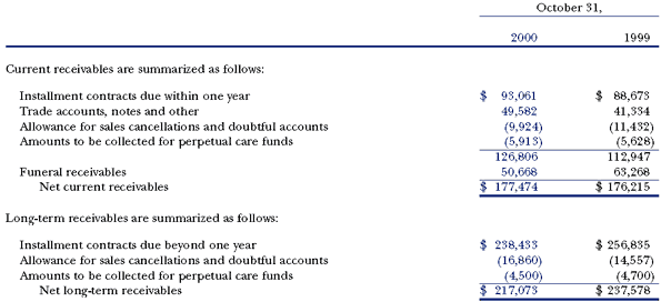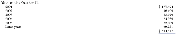 The Companys receivables as of October 31, 2000 are expected to mature as follows: