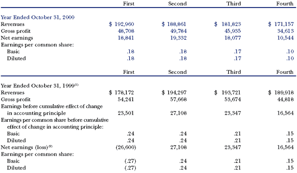 (2) In addition, the first quarter as presented above includes a $50,101 decrease in net earnings (net of a $28,798 income tax benefit), or $.51 per share (basic and diluted), for the cumulative effect of the change in accounting principle. |
