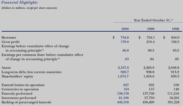 (1) Fiscal 1999 results reflect a change in accounting principle effective November 1, 1998. For comparative purposes, fiscal 1998 results are presented on a pro forma basis as if the accounting change had occurred at the beginning of that fiscal year. (2) Excludes performance-based stock option charge in fiscal 1998. |
