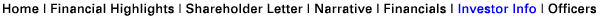 | Home | Financial Highlights | Shareholder Letter | Narrative | Financials | Investor Info | Officers |