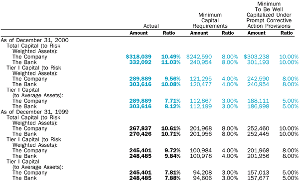 risk-weighted capital ratios as of December 31, 2000 and 1999 to