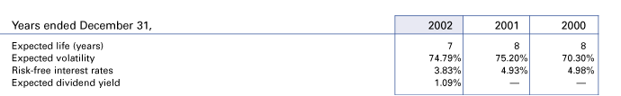 | Notes to Consolidated Financial Statements The Company's stock compensation program also provides for the grant of performance-based stock options to key employees ("Performance Options"). The terms and conditions of the Performance Options grants provide for the determination of the exercise price and the beginning of the vesting period to occur when the fair market value of the Company's common stock achieves certain targeted price levels. The Company did not grant Performance Options in 2002. Performance Options to purchase 56,000 shares and 108,000 shares of common stock were granted during 2001 and 2000, respectively. Performance Options to purchase 49,000 shares, 32,000 shares and 112,000 shares of common stock were forfeited in 2002, 2001 and 2000, respectively. One targeted price level of the Performance Options was achieved in 2002, resulting in determination of the exercise price and beginning of the vesting period for options to purchase 52,000 shares of common stock. Performance Options for which the targeted price level has not been achieved total 315,000 shares, 416,000 shares and 392,000 shares at December 31, 2002, 2001 and 2000, respectively, and are excluded from disclosures of options outstanding. The aggregate number of shares of common stock reserved for issuance under the Company's stock compensation programs as of December 31, 2002 and 2001 was 4,750,000 and 3,000,000, respectively. The aggregate number of shares available for future grant as of December 31, 2002 and 2001 was 2,013,261 and 380,227, respectively. Shares available for future grant as of December 31, 2002 includes 141,550 shares of common stock related to stock options that may be subject to future grant under certain of the Company's incentive plans based upon the achievement of certain financial targets and individual performance objectives and action by the Company's Board of Directors. The Company applies APB 25 and related interpretations in accounting for its employee stock options because, as discussed below, the alternative fair value accounting provided for under SFAS No. 123, "Accounting for Stock-Based Compensation," requires use of option valuation models that were not developed for use in valuing employee stock options. Under APB 25, when the exercise price of the Company's employee stock options is at least equal to the market price of the underlying stock on the date of grant, no compensation expense is recognized. Pro forma information regarding net income and earnings per share is required by SFAS No. 123, and has been determined as if the Company had accounted for its employee stock options under the fair value method of SFAS No. 123. The fair value for options granted by the Company during 2002, 2001 and 2000 were estimated at the date of grant using a Black-Scholes option pricing model with the following weighted-average assumptions: