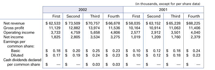 | Notes to Consolidated Financial Statements Note 17. Quarterly Financial Information (Unaudited) The following is an analysis of certain items in the consolidated income statements by quarter for the years ended December 31, 2002 and 2001: