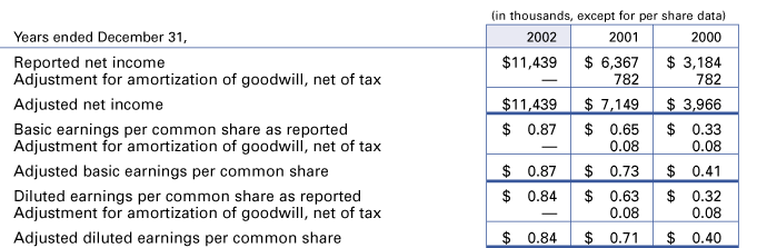 The nonamortization of goodwill has increased the Company's net income and earnings per share beginning in 2002. Following are pro forma results assuming goodwill had not been amortized prior to January 1, 2002: