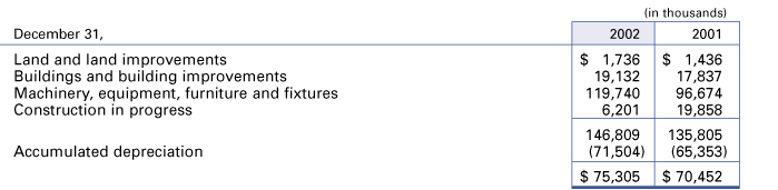 The preceding amounts include inventory valued under the LIFO method that totaled approximately $12,663,000 and $9,141,000 at December 31, 2002 and 2001, respectively. Note 6. Property, Plant and Equipment Property, plant and equipment consists of the following: |