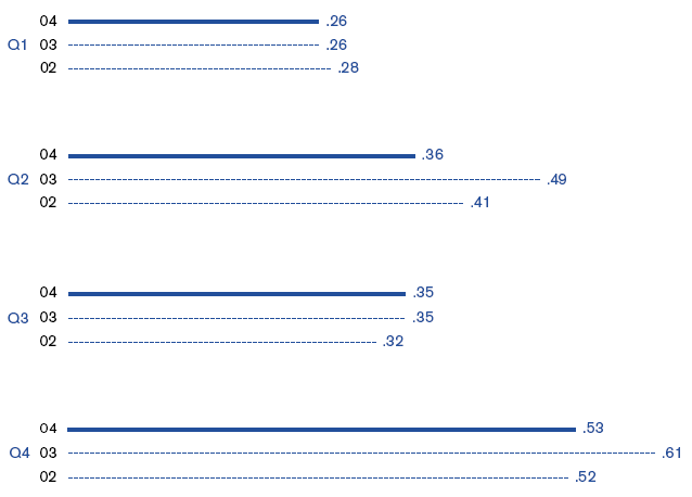 YEAR-OVER-YEAR COMPARISONS EARNINGS PER SHARE BY QUARTER