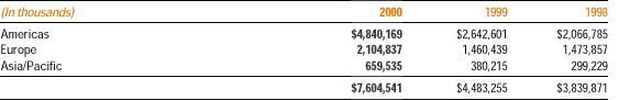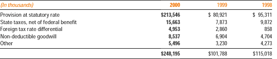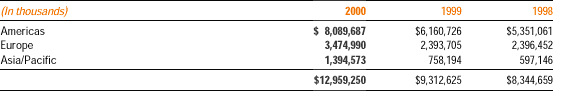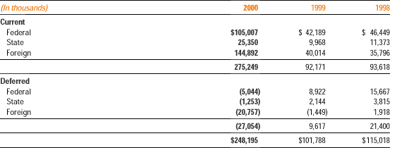 For financial reporting purposes, income before income taxes attributable to the United States was $277,188,000 in 2000, $131,007,000 in 1999, and $183,048,000 in 1998 and income before income taxes attributable to foreign operations was $332,943,000 in 2000, $100,198,000 in 1999, and $89,267,000 in 1998.