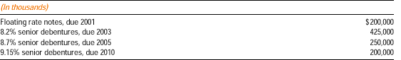The 7% senior notes and the 7 1/2% senior debentures are not redeemable prior to their maturity. The 6 7/8% senior debentures, 6.45% senior notes, 8.2% senior debentures, 8.7% senior debentures, and 9.15% senior debentures may be prepaid at the option of the company subject to a "make whole" clause. The 8.29% senior notes were repaid in December 2000.