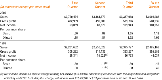 The unaudited pro forma combined summary of operations does not purport to be indicative of the results which actually would have been obtained if the acquisitions had been made at the beginning of 1999 or of those results which may be obtained in the future. The company has achieved cost savings from the acquisition of Richey and EDG and expects to achieve further substantial cost savings from the combination of its acquisitions. The anticipated cost savings have not been reflected in the unaudited pro forma combined summary of operations. In addition, the unaudited pro forma combined summary does not reflect any sales attrition which may result from the combinations.