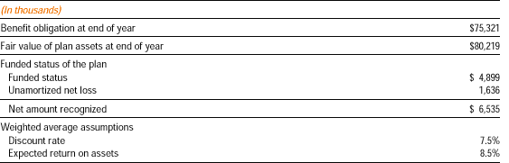 the company’s stock ownership plan. Pension information as of the year ended December 31, 2000 is as follows:
