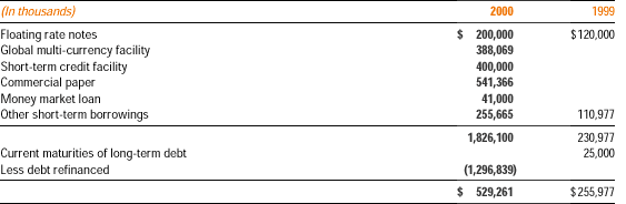 Other short-term borrowings are principally utilized to support the working capital requirements of certain foreign operations. The weighted average interest rates on these borrowings at December 31, 2000 and 1999 were 5.5% and 4.8%, respectively.