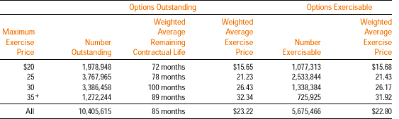 The following table summarizes information about stock options outstanding at December 31, 2000: