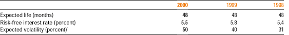 The estimated weighted average fair value, utilizing the Black-Scholes option-pricing model, at the date of option grant during 2000, 1999, and 1998 was $12.25, $7.07, and $8.35, per share, respectively. The weighted average fair value was estimated using the following assumptions: