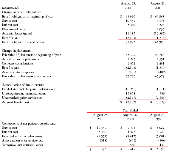 and August 28, 1999. Prior service cost is amortized over the estimated