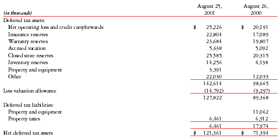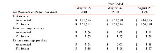 at August 25, 2001, 8% at August 26, 2000, and 7% at August 28, 1999.