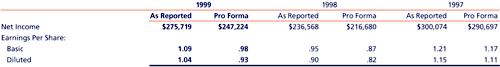 in 1999, 1998 and 1997: risk free interest rates of 4.79%, 5.55%,