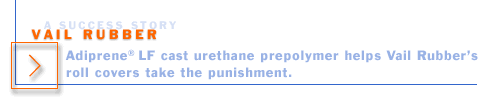 "Thanks to the Adiprene prepolymer, our customer's line is running at peak efficiency," said Vail Rubber's Tim Hanley.