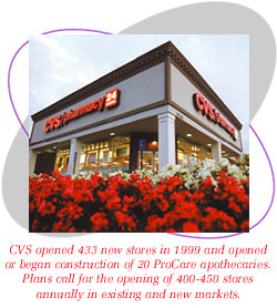 For 1999 alone, we opened a record 433 new CVS stores, including about 300 CVS relocations. In addition, at year-end 1999, we had 12 ProCare apothecaries open and another eight under construction. We expect to open 400 to 450 new stores each year in the foreseeable future. To achieve this measure of success, we formed CVS Realty Co., a fully integrated captive development company led by a dedicated team of real estate professionals, affording CVS in-house expertise and the ability to take a more active role in every aspect of retail site development. This strategy, in combination with the strong sales generated by new stores, has enabled us to reduce our cost by $4 to $5 per square foot and to continually decrease our occupancy costs as a percent of sales.