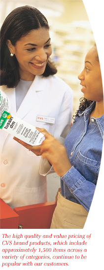 The CVS brand business is still another category where innovation has brought reward. We continue to introduce high-quality, excellent-value private label products that aim to lift sales of their entire category without cannibalizing the sales of leading brand products. We added 270 new CVS brand products in 1999 to raise the total number of products throughout the store to nearly 1,500. Our category focus for 2000 is cosmetics and bath items, where we intend to introduce superior quality products at affordable prices.