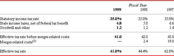 Following is a reconciliation of the statutory income tax rate to the Companys effective tax rate for the respective fiscal years: