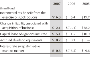 Supplemental cash flow information related to certain non-cash investing and financing transactions for fiscal 2007, 2006 and 2005 is as follows: