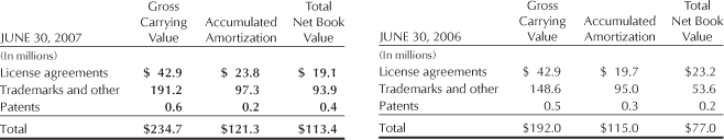million as of June 30, 2007 and June 30, 2006, respectively,