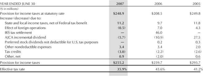material incremental tax provision. As of June 30, 2006